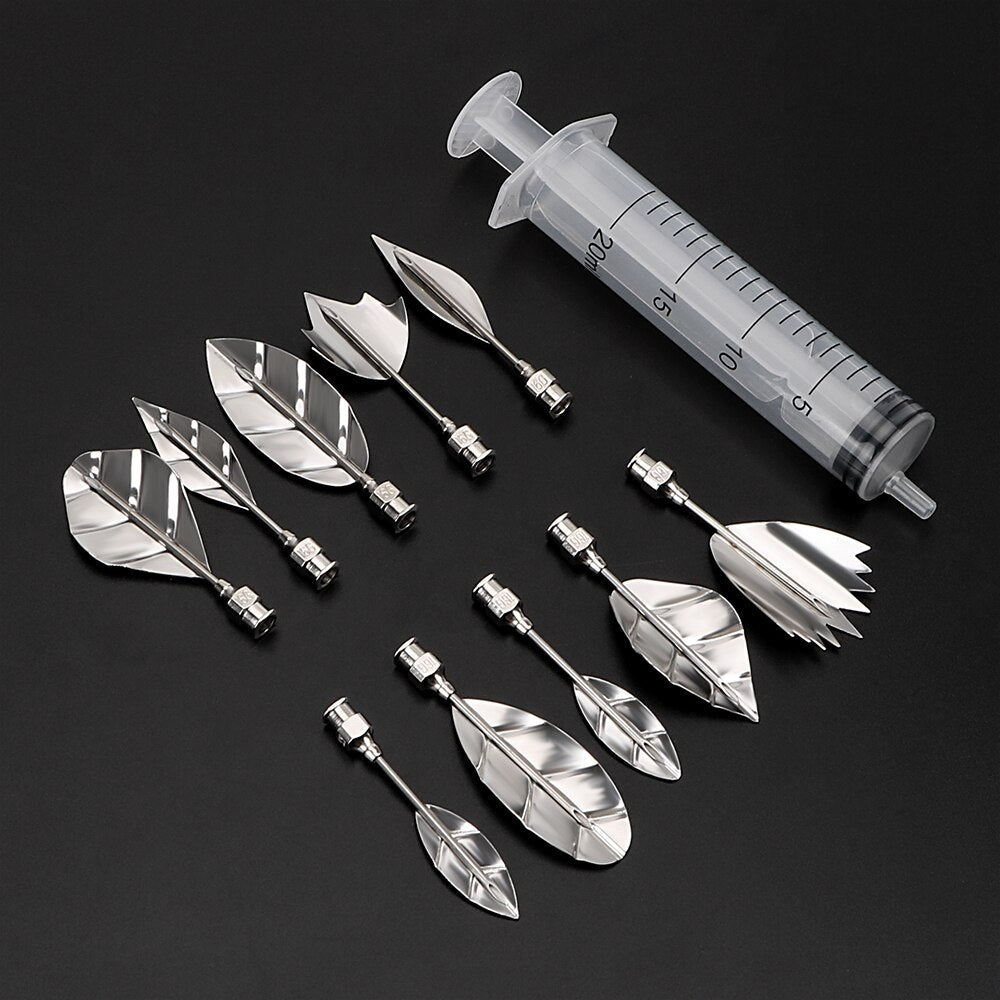 Gemaakt van food-grade, duurzaam roestvrij staal, deze set bestaat uit 10 verschillende naalden gebruikt voor het creëren van een verscheidenheid van opvallende en levendige bloemdecoratie. Een perfecte tool voor zowel professioneel gebruik of thuisgebruik, die zeker indruk kan maken op je familie en vrienden in bruiloften, partijen en verjaardagen met prachtige 3D gelei taart!