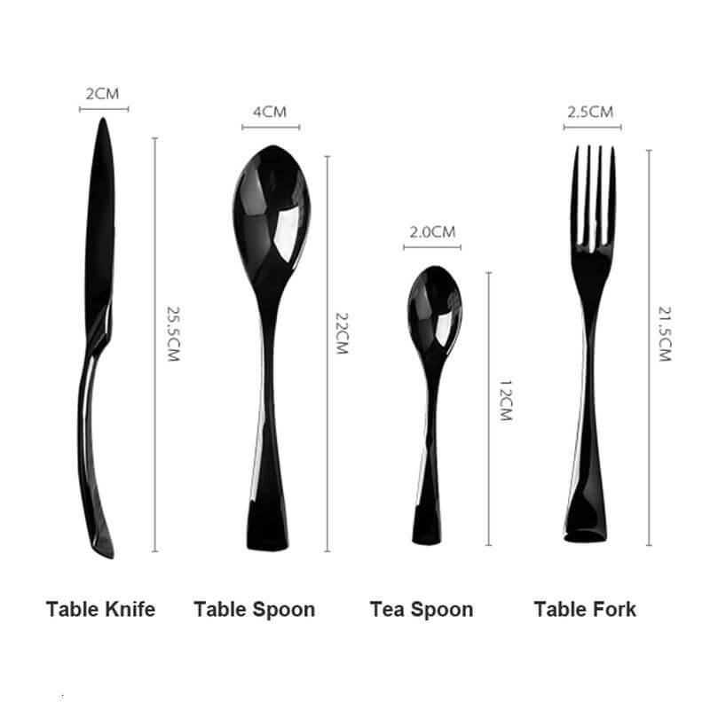 Transformeer je tafelschikking met deze zwart gepolijste roestvrij stalen serviesset.
