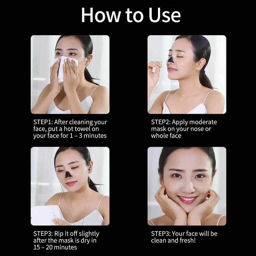 - Makkelijk te gebruiken - Breng het masker gelijkmatig aan op je neus en gezicht na het wassen van je gezicht. Wacht 10-15 minuten, trek het van onder naar boven af nadat het droog is, en maak het dan schoon met warm water.