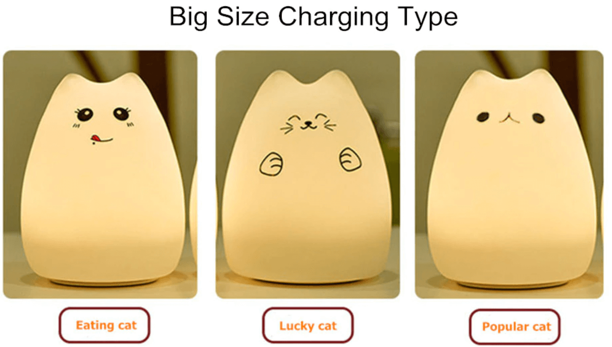 Verlicht je kamer met één van deze Cheeky Cat LED Lampen en wissel tussen witte kleur of gewoon de bovenkant op de Lamp en schakel over naar de 7-kleuren-stand. De kleuren automatisch gewijzigd. Gemakkelijk op te laden via een Micro USB-poort.