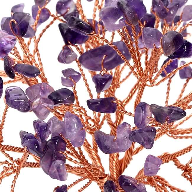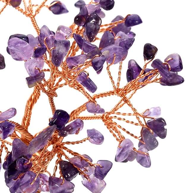 PRACHTIG VAKMANSCHAP: Handgemaakte hart geld boom kristal Feng shui Ornament gemaakt van amethist getrommelde stenen als de bladeren, koperen draden als de takken.