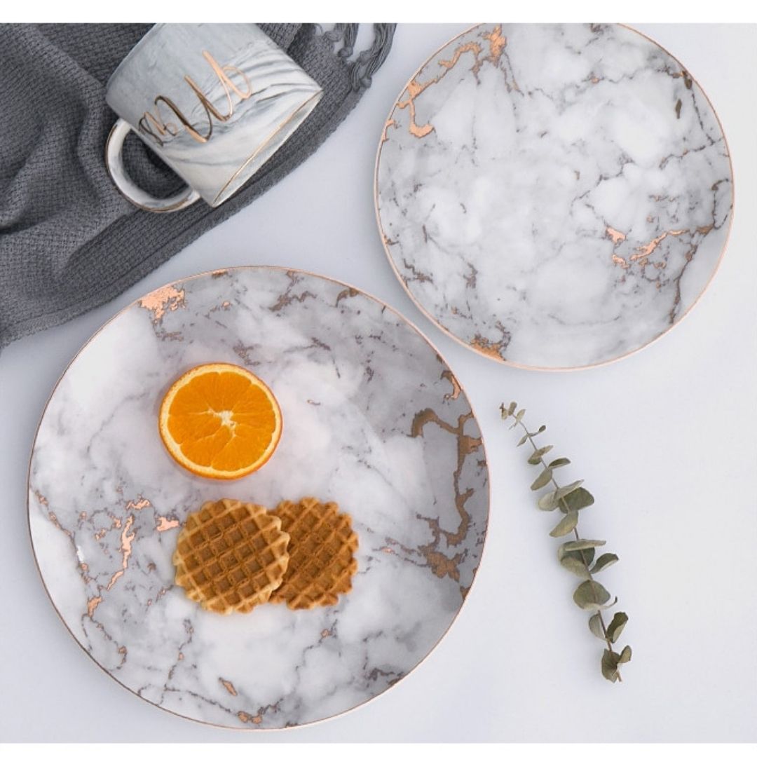 Verfraai elegante diners en informele lunches met ons marmeren bord van keramiek. Met een modern en toch klassiek ontwerp zullen deze borden u tijdens het eten het gevoel geven dat u royalty bent.