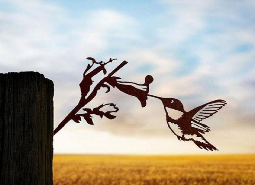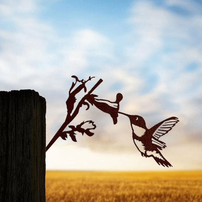 Deze stalen kolibrie en bloemen tuin kunst is perfect voor je tuin, erf, of patio. Deze vogelmarker is een geweldige manier om wat schoonheid aan je tuindecoratie toe te voegen!