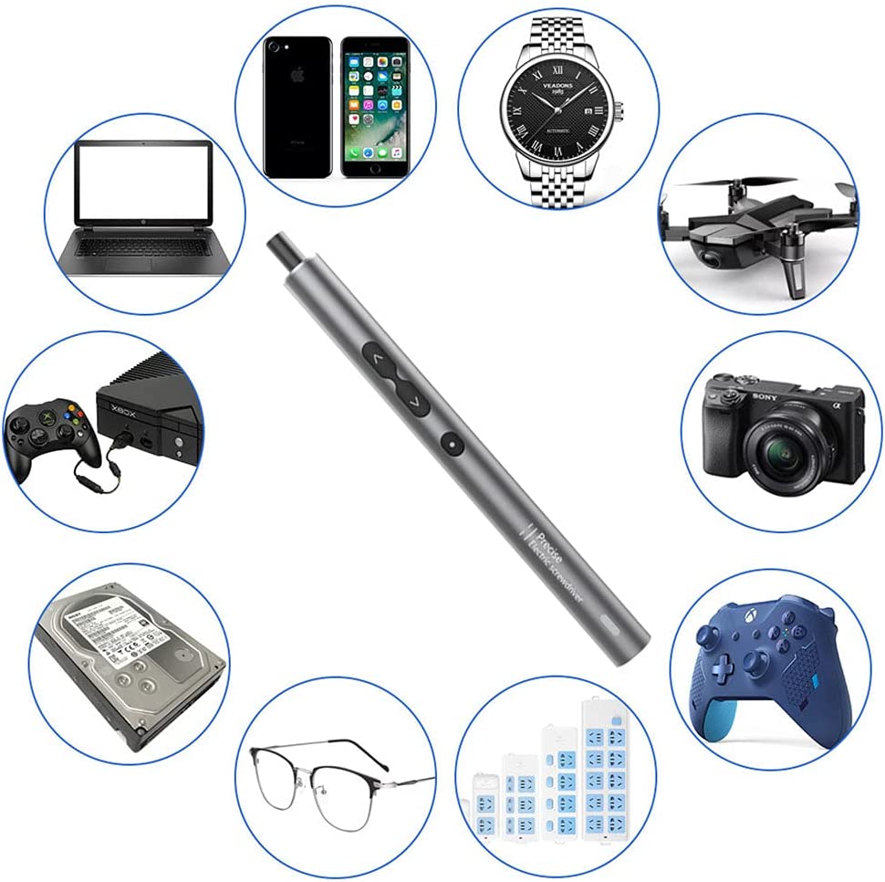 ALLES-IN-ÉÉN & VEELZIJDIG: De elektrische schroevendraaierset bevat 10 nauwkeurige bits, een magnetisch werkblad, een zuignap, een breekijzer, pincetten en meer. Het is geschikt voor een breed scala aan toepassingen, van het repareren van kwarts horloges, digitale camera's, radio's, tablet-pc's en smartphones tot drones, laptops, iPhones, brillen, Macbooks, Xbox-consoles, speelgoed en zelfs meubels.