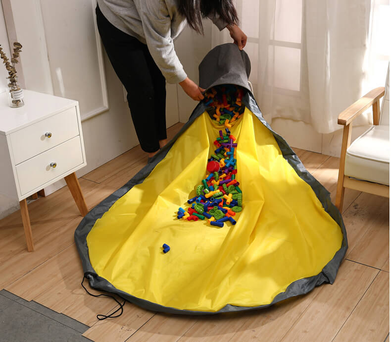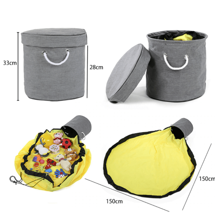 Deze speelgoed opbergtas is de meest efficiënte manier om de rommel van kinderen op te ruimen na het spelen. Het is ook een speelkleed dat gemakkelijk kan worden opgevouwen tot een opbergtas voor onmiddellijke opruiming. Als je hem eenmaal hebt gekocht, zul je je afvragen hoe je het hebt overleefd zonder. De tijd die je vroeger aan opruimen verspilde, wordt weer van jou!