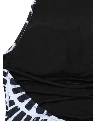 De print geeft een twist aan een klassiek eendelig silhouet. Het unieke crisscross detail op de rug is ultra-vrouwelijk, terwijl de effen kleur aan de voorkant ervoor zorgt dat u er verzorgd uitziet.